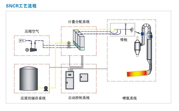 脱硝控制系统针对SCR(选择性催化还原技术)和SNCR(选择性非催化还原技术)两种不同工艺根据烟气分析仪上传的NOx浓度信号实现自动控制(催化或还原)混合溶液的添加量,从而实现NOx的实时达标排放。